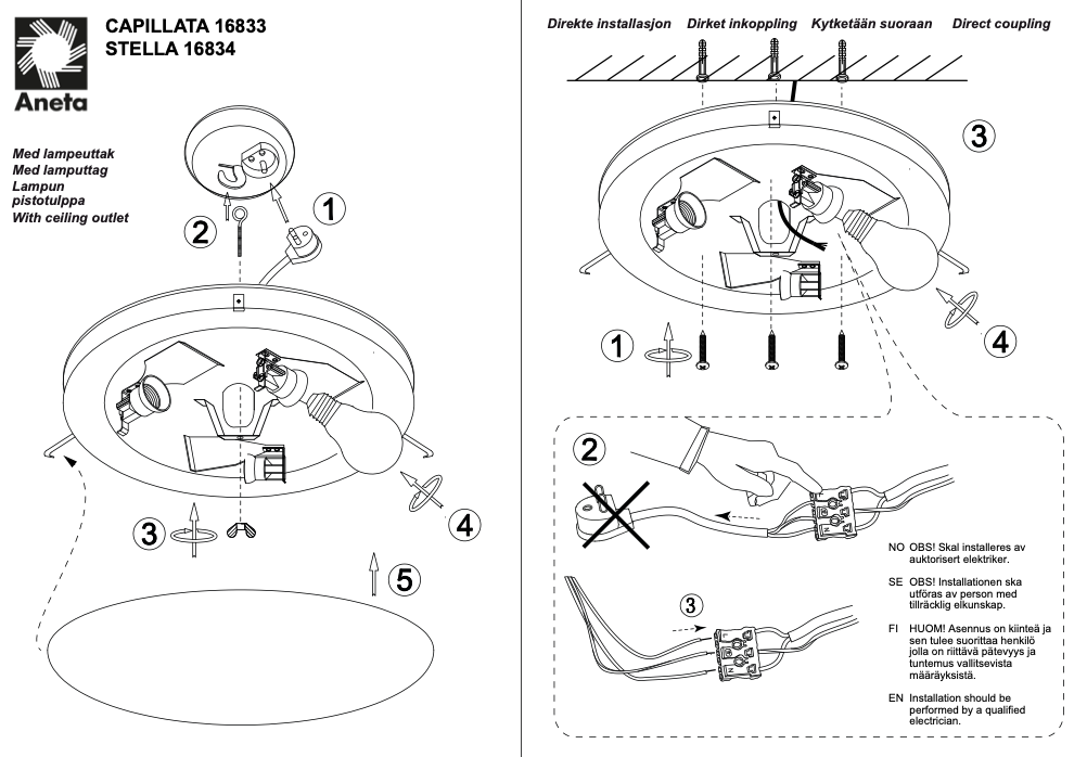 Capillata plafondi levittää valon laajasti ja häikäisemättömästi koko huoneeseen. Kolmen E27-polttimon ansiosta valaistuksen teho voidaan mitoittaa tilan ja käyttötarpeen mukaan, ja kattokoukkukiinnitys tekee asennuksesta helppoa ja siistiä.