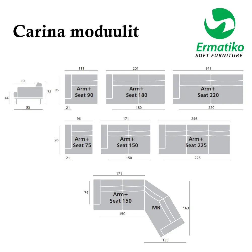 | 222 cm | 95 cm | 72 cm | cm | cm | cm | cm | 44 cm | 180 cm | 62 cm | 18 cm | cm | cm | cm | cm | cm | cm | 21 cm | Jämäkkä selkänojatyyny, Vaahtomuovi HR25 | cm | cm | cm | cm | cm | cm | cm | cm | cm | cm | Aracon kangas, Hygge kangas, Monolith kangas, Orinoco kangas | Jalat massiivipuuta, Jalat metallia, Massiivipuu, Vaneri | cm | Täystakuu tuotteelle 2 vuotta | Tilaustuote | Toimitus koottuna - jalkojen kiinnitys | kg | Viro | cm | cm | cm |