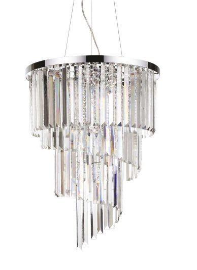 Kaunis Carlton kristallinen riippuvalaisin on näyttävä ja arvokas valaisin, jossa kahdeksankulmaisista ketjuista ja leikatusta kristallista koostuvat koriste-elementit luovat vaikuttavan, valoa heijastavan kokonaisuuden. Runsas kristallipinta tuo tilaan loistoa ja eleganttia tunnelmaa, joka tekee vaikutuksen heti ensisilmäyksellä.