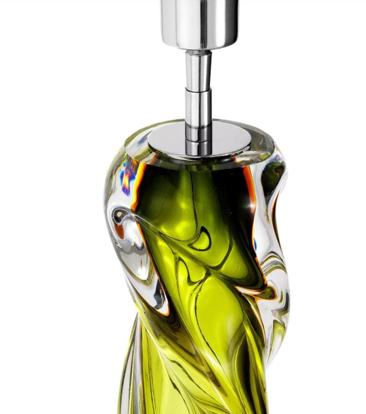 Carnegie-pöytävalaisin tuo sisustukseesi upean visuaalisen säväyksen yhdistämällä käsinpuhalletun lasin vihreät vivahteet kirkkaan lasin keveyteen. Pyöreä oliivinvihreä lampunvarjostin kruunaa kokonaisuuden ja tekee valaisimesta näyttävän katseenvangitsijan niin olohuoneeseen, makuuhuoneeseen kuin työtilaan.