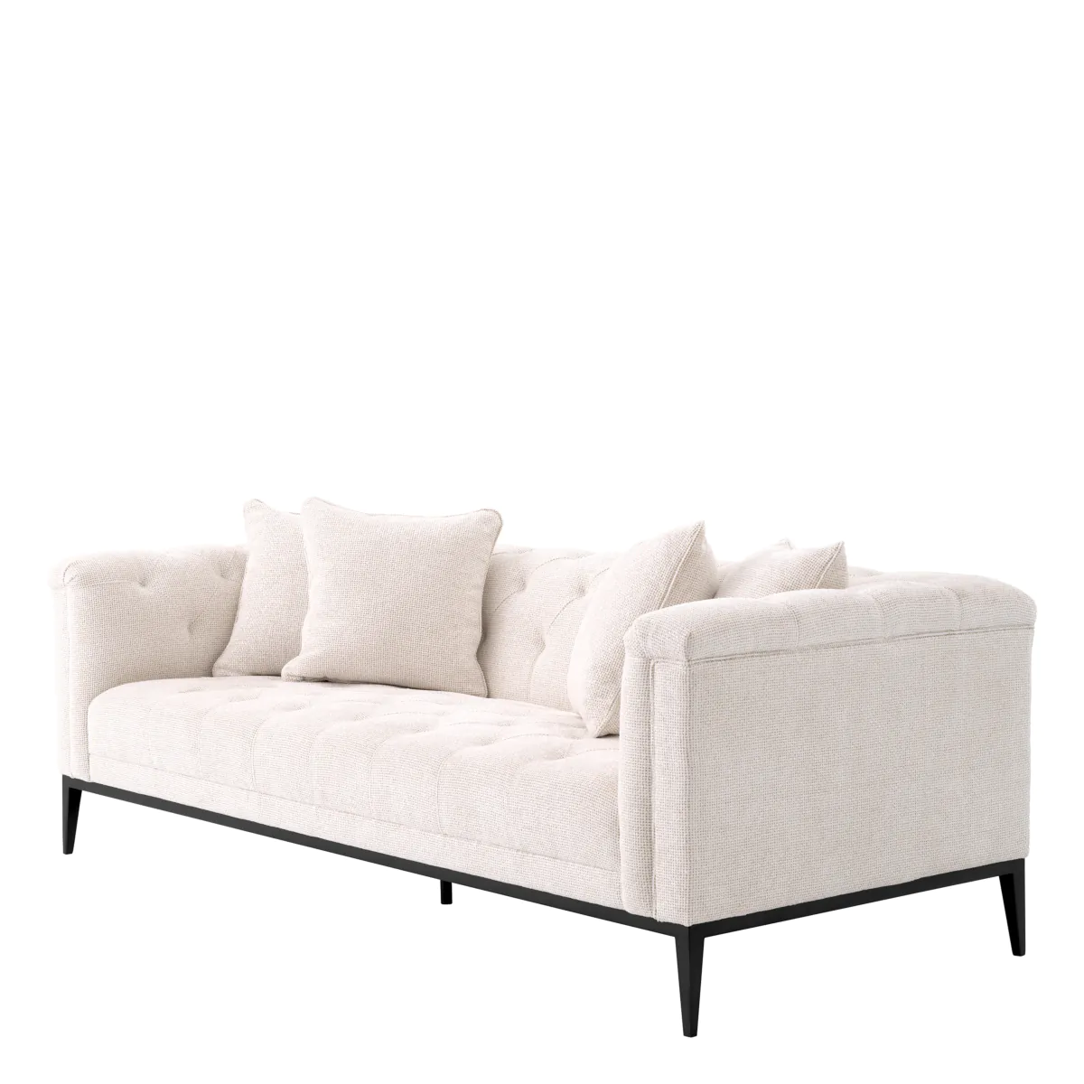 Cesare-sohva yhdistää klassisen chesterfield-tyylin ja modernin estetiikan, tuoden tilaan elegantin kaarevuuden ja hienovaraisen nappiselkänojan, joka tekee kokonaisuudesta tyylikkään ja arvokkaan. Luonnonvalkoinen verhoilu viimeistelee sohvan pehmeän ja ajattoman ilmeen, joka sopii saumattomasti monenlaisiin sisustuksiin.