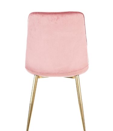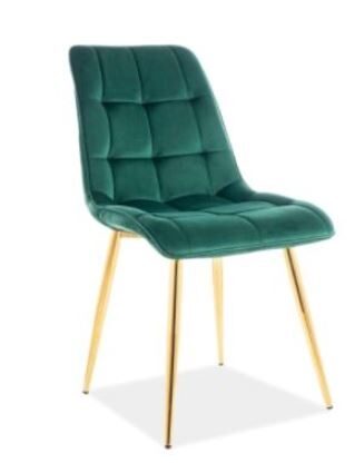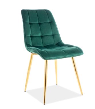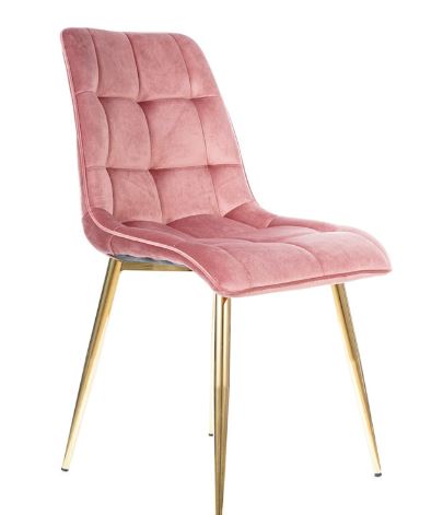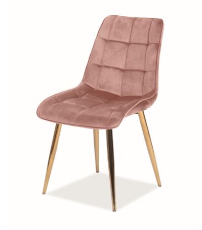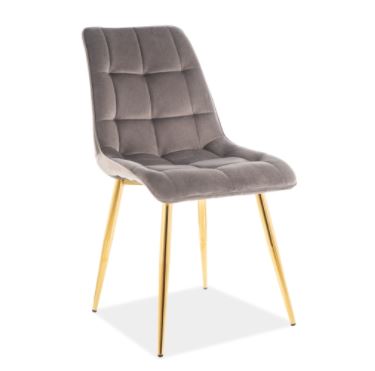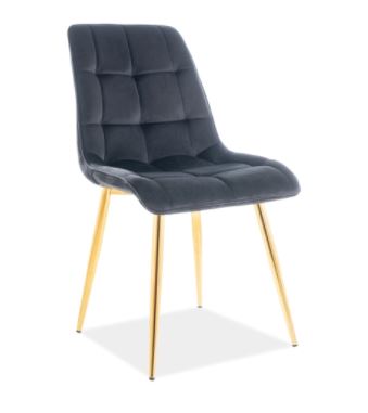 Chic-tuoli tuo ruokailutilaasi näyttävää eleganssia samettikankaan pehmeydellä ja kullanvärisen metallirungon modernilla ilmeellä, luoden heti huomiota herättävän kokonaisuuden.
