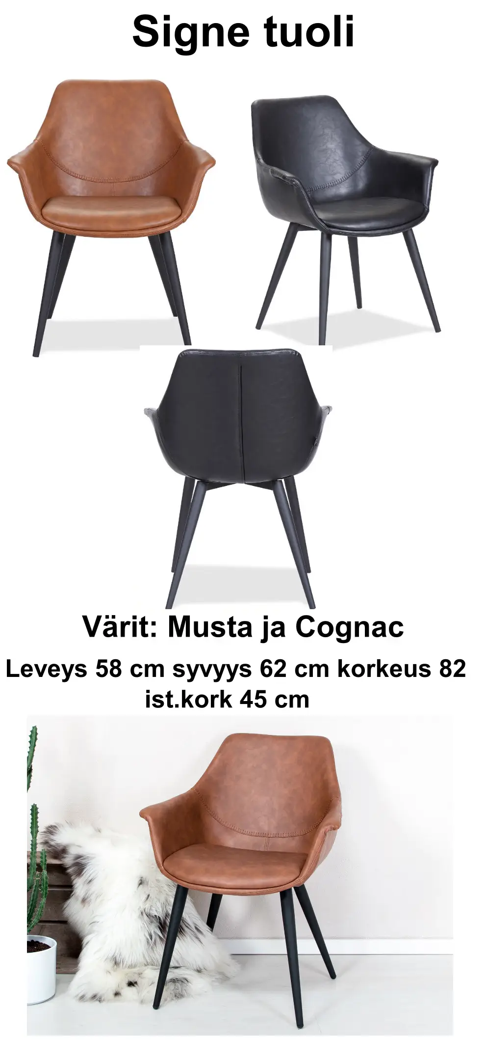 Lisähinnasta saatava hoitoöljy auttaa pitämään pöydän pinnan kauniina ja hyväkuntoisena pitkään. Massiivipuulle ominaiset kosteus- ja kuivuusvaihtelut voivat aiheuttaa halkeamia, mikä on normaalia ja tarvittaessa helposti korjattavissa puukitillä, ja kokonaisuuden voi viimeistellä yhteensopivilla Signe-ruokapöydän tuoleilla.