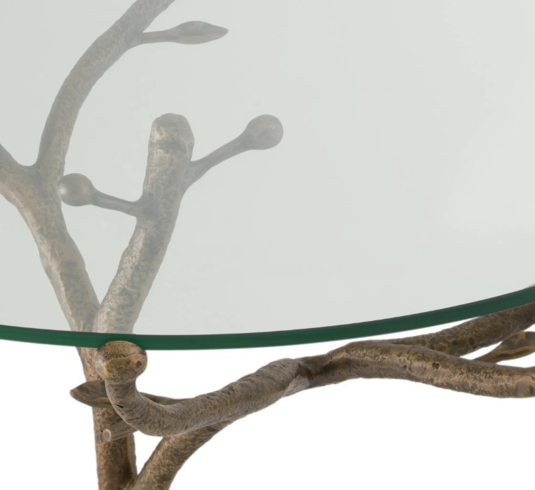 Christophe pyöreä pöytä yhdistää kirkkaan lasikannen ja oksamaisen valetun messinkirungon, joka tuo sisustukseesi luonnollista eleganssia ja taiteellista ilmettä. Sen hienostunut muotoilu toimii näyttävänä katseenvangitsijana niin olohuoneessa, eteisessä kuin pienemmissä tiloissa.