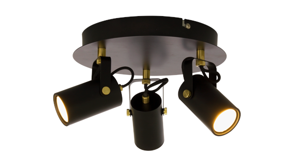 Moderni 3-osainen metallirunkoinen Cilindro spottivalaisin on selkeälinjainen ja tyylikäs valinta nykyaikaiseen sisustukseen. Musta ja mattamessinki viimeistely tuovat tilaan modernia ilmettä ja tekevät valaisimesta helposti yhdistettävän keittiöön, olohuoneeseen, eteiseen tai työtilaan.