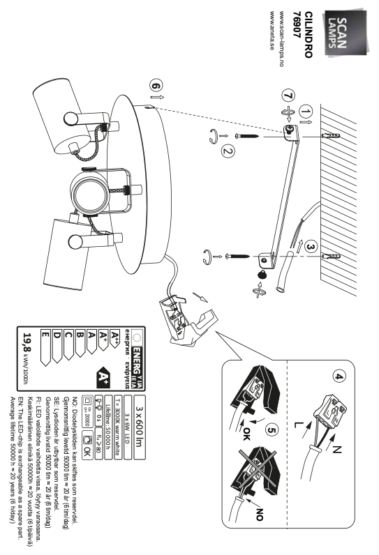 Kolme energiatehokasta 6 watin LED-valonlähdettä tarjoavat tasaisen ja tehokkaan valaistuksen sisätiloihin. Kestävä metallirakenne, IP20-luokitus ja mukana toimitettavat polttimot tekevät Cilindro spottivalaisimesta käytännöllisen ja pitkäikäisen valaistusratkaisun.