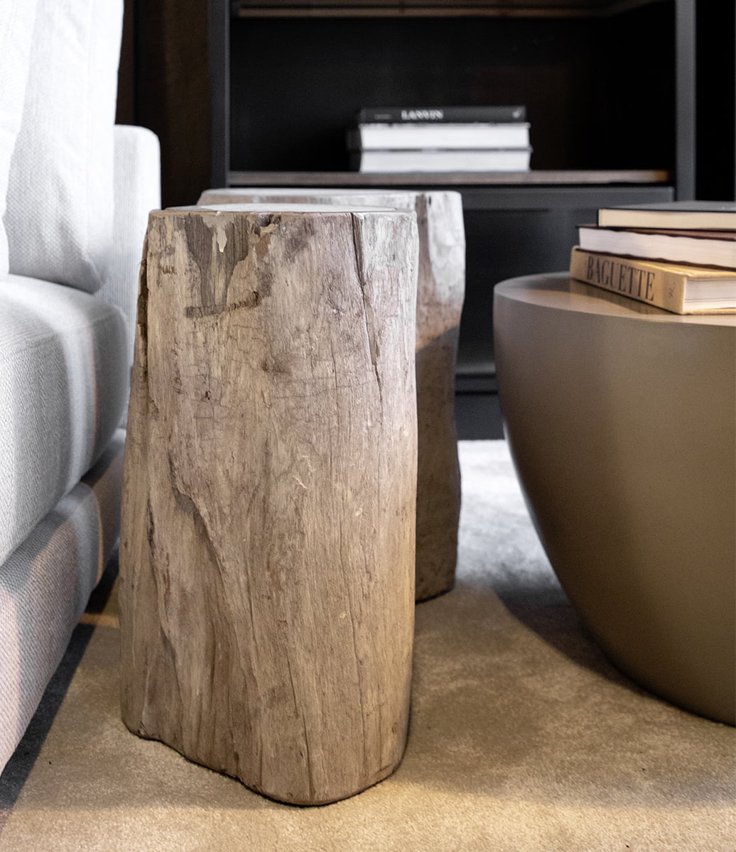 Tiikkipuinen Colorado Log sivupöytä/penkki on valmistettu kierrätetystä tiikkipuusta, joka tuo sisustukseen aidon luonnonläheisen ilmeen ja erottuvan rustiikkisen luonteen. Materiaalin luonnollinen patina, värivaihtelut ja hienovaraiset yksityiskohdat tekevät jokaisesta kappaleesta täysin uniikin – ei kahta samanlaista.