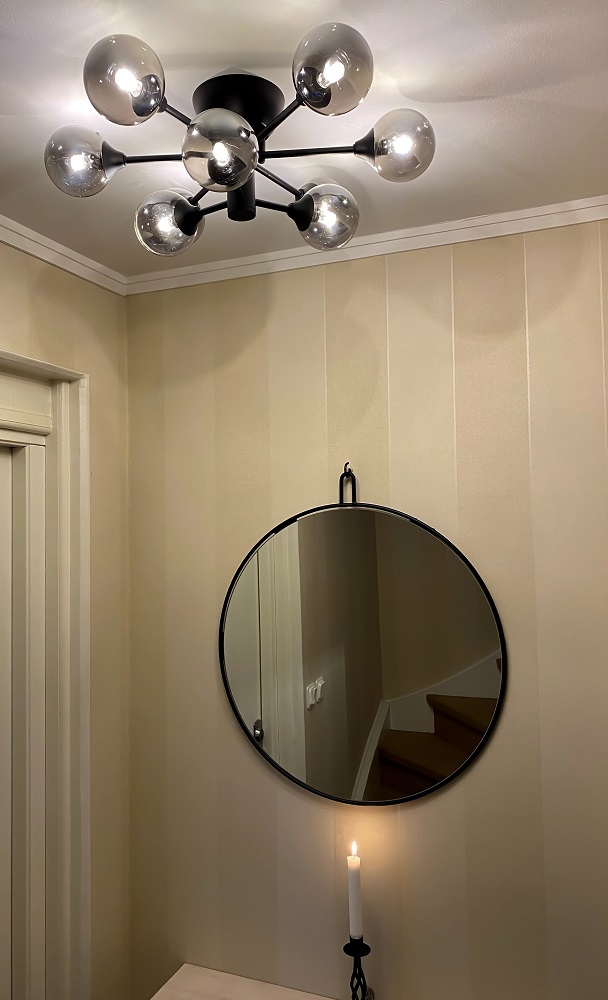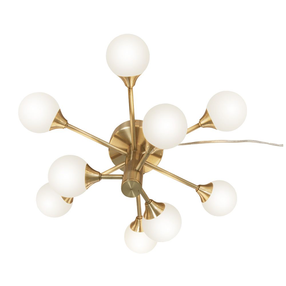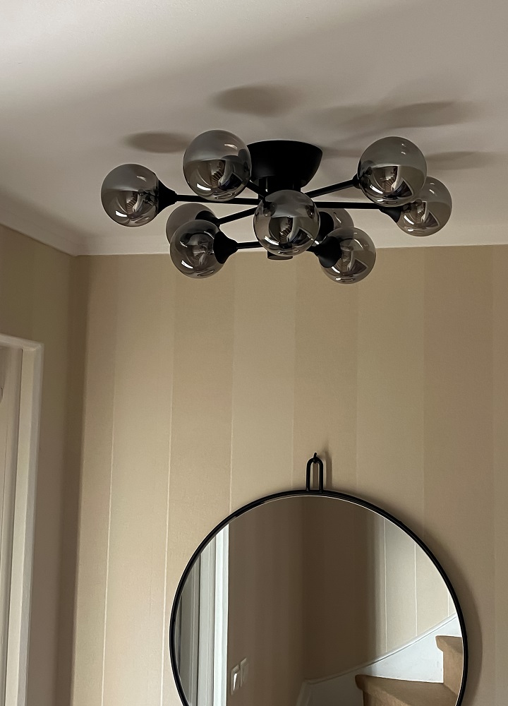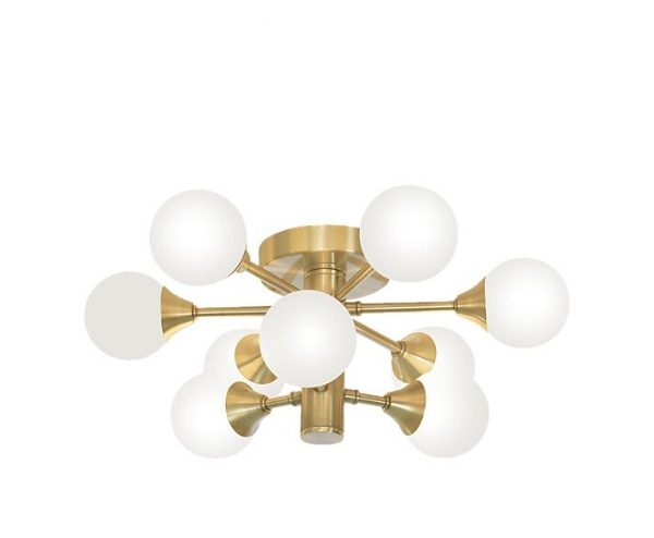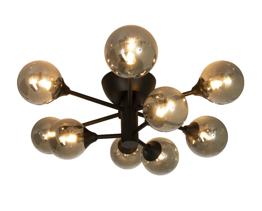 Tyylikäs 9-haarainen Cosmos kattovalaisin on moderni katseenvangitsija, jossa pallonmuotoiset lasikuvut ja selkeälinjainen metallirunko muodostavat harmonisen kokonaisuuden. Saatavilla mustana tai messinkisenä, valaisin tuo sisustukseen eleganttia ilmettä ja toimii upeana keskipisteenä olohuoneessa, makuuhuoneessa tai eteisessä.