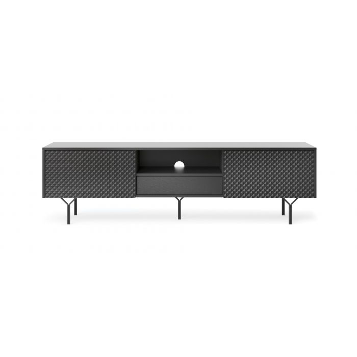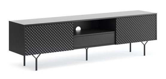Crisp tv-taso hurmaa modernilla muotoilullaan ja upeilla kuvioiduilla etusarjoillaan, jotka tuovat kalusteeseen persoonallista ja ylellistä ilmettä. Tukeva 16 mm laminoitu runko ABS-reunanauhalla sekä mustaksi maalatut metallijalat luovat kestävän ja tyylikkään perustan olohuoneen keskipisteeksi.