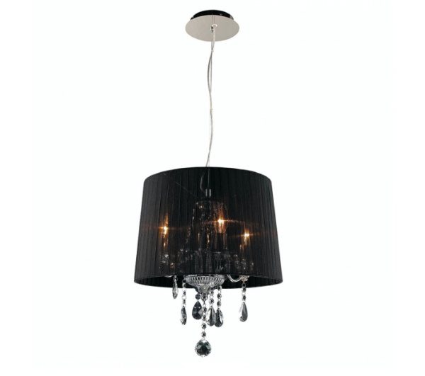 Crystal kristalli riippuvalaisin käyttää kolmea E14-kantaista polttimoa (max 40W), jotka tuottavat miellyttävän ja tasapainoisen valon. Kristallit heijastavat valoa näyttävästi ja varjostin pehmentää kokonaisuutta, luoden ylellisen ja kutsuvan tunnelman ilman häikäisyä.