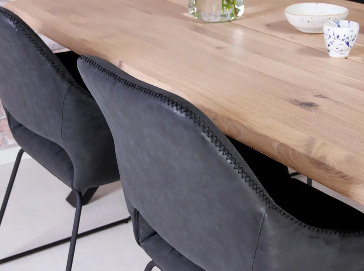 Curve-ruokapöydän 3 cm paksu massiivipuinen kansi on viimeistelty öljyllä ja lakalla, ja se on saatavilla kuudessa eri öljykäsittelyn sävyssä. Lisähinnasta pöytään on mahdollista valita vaihtoehtoiset jalkamallit sekä tilata yksi tai kaksi jatkopalaa joko mustana tai tammisena, kun tarvitset lisää tilaa arkeen tai juhlaan.