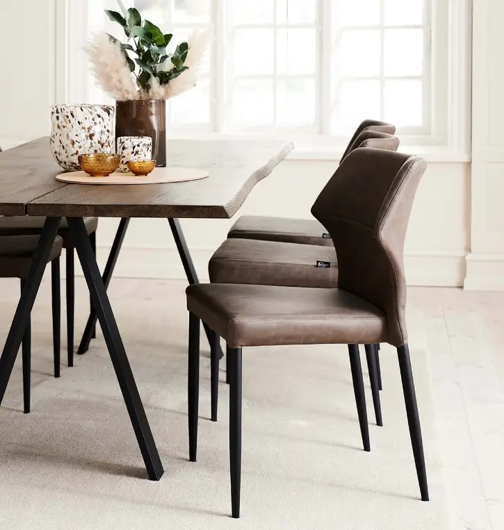 Curve ruokailuryhmä B4 mustilla jaloilla ja kahdeksalla Angel-tuolilla on näyttävä kokonaisuus, jossa moderni design kohtaa pehmeän aaltomaisen muotokielen. Pöydän kauniisti kaartuvat reunat erottavat sen edukseen ja tekevät siitä katseenvangitsijan, joka nostaa koko ruokailutilan ilmeen uudelle tasolle.