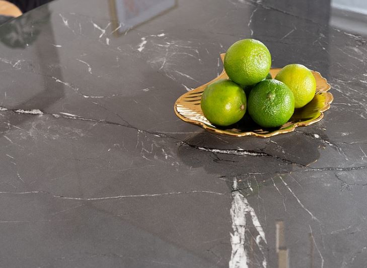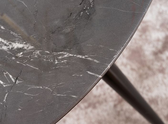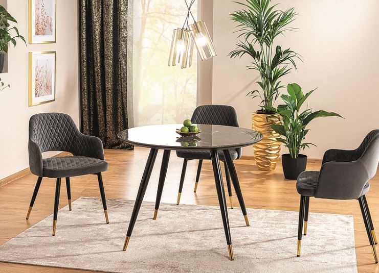 Cyryl II -pyöreä ruokapöytä tuo kotiisi hienostunutta modernia tyyliä mustalla MDF- ja marmorikuvioidulla lasipinnallaan, luoden näyttävän keskipisteen ruokailutilaan.