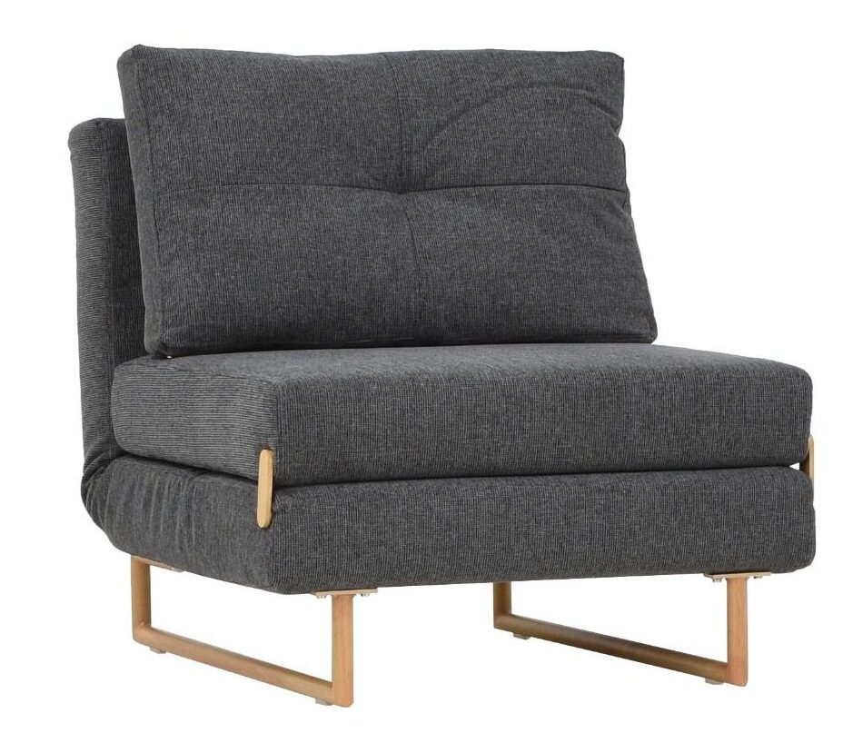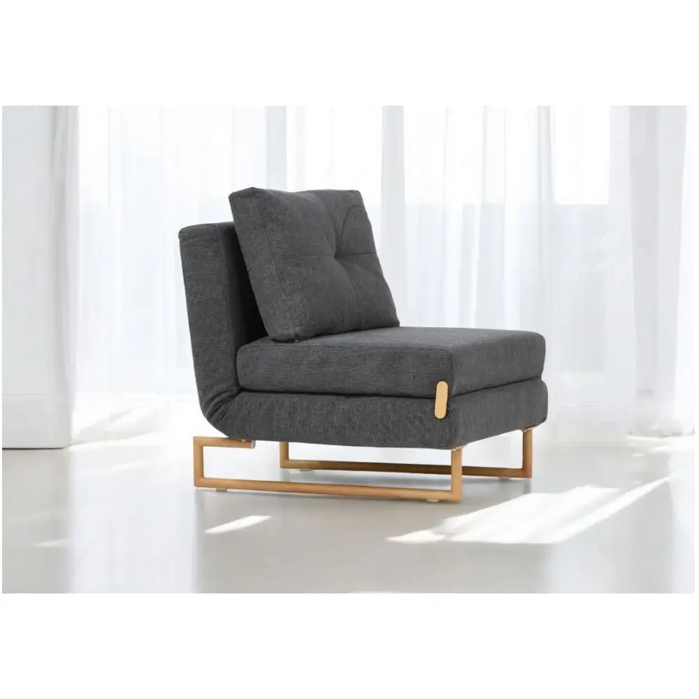 Darien-vuodetuoli tarjoaa tyylikkään ja tilaa säästävän ratkaisun, joka toimii sekä mukavana lepotuolina että kätevänä vierasvuoteena. Tuolin selkänoja kallistuu useaan eri asentoon, mikä lisää istumisen ja lepäilyn mukavuutta. Harmaa, kulutusta kestävä polyesteriverhoilu yhdistettynä tammenvärisiin metallijalkoihin antaa kokonaisuudelle modernin ja huolitellun ilmeen.