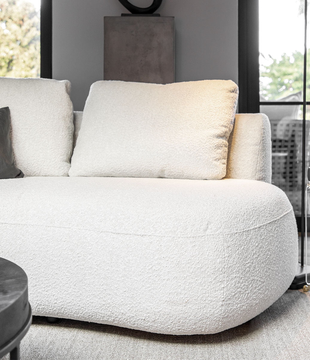 Dixon-divaanisohva on verhoiltavissa viidellä korkealuokkaisella kankaalla – upea Bouclé, pehmeä Chenel, moderni Haze, ylellinen Moment ja elegantti Story – joiden laaja värivalikoima mahdollistaa sohvan täydellisen sovittamisen juuri sinun sisustukseesi. Jokainen kangas tuo sohvan muotoihin oman tyylikkään ilmeensä ja viimeistellyn kokonaisuuden.