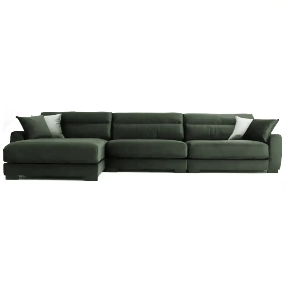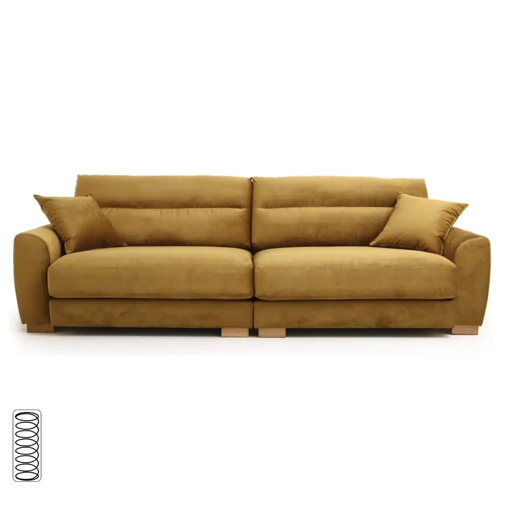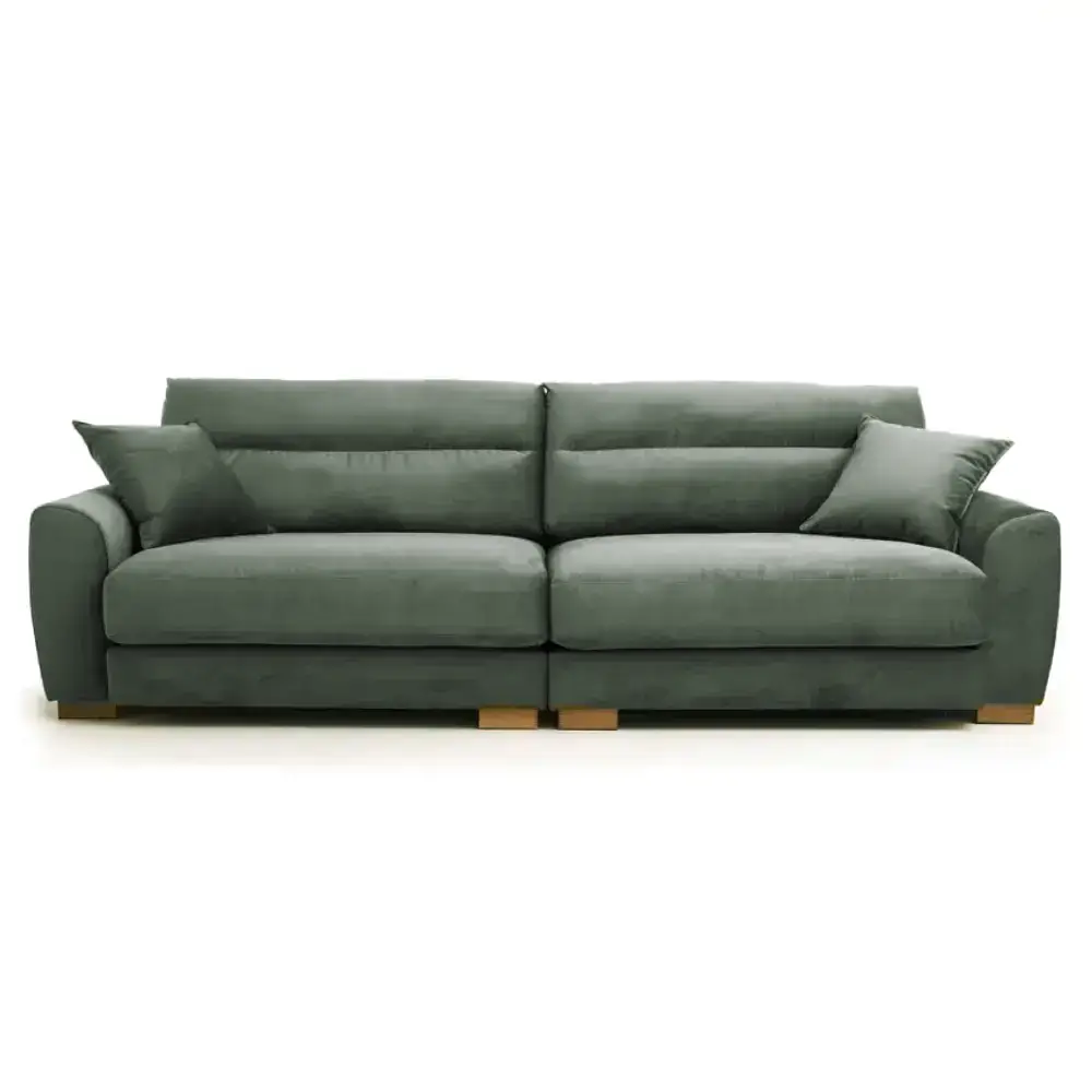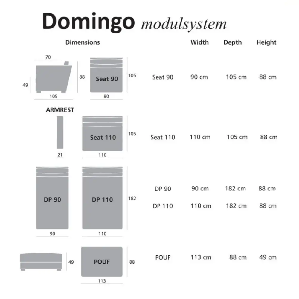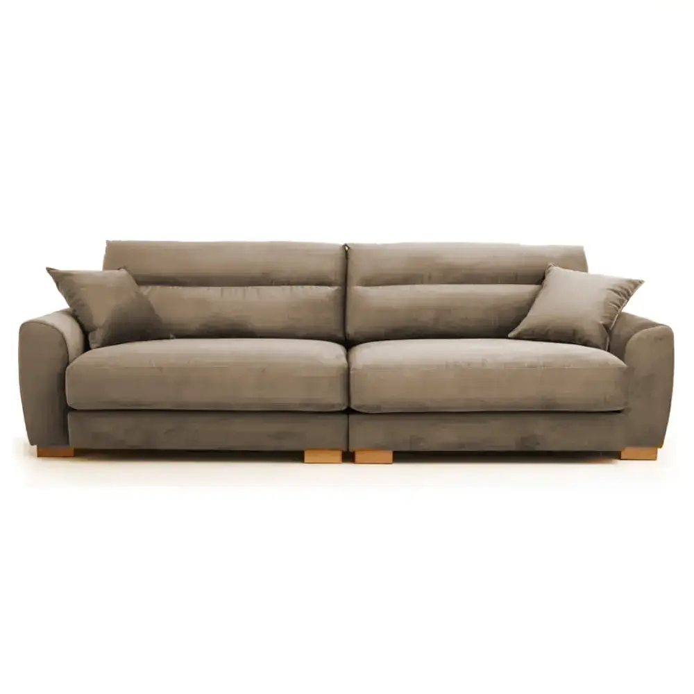 Muhkea Domingo sohva tarjoaa reilun istuinsyvyyden, pussijousitetut höyhentäytteiset istuintyynyt ja käännettävät selkätyynyt, jotka tekevät istumisesta erityisen pehmeää ja miellyttävää. Tukeva massiivipuu/vanerirunko, laadukkaat verhoilukankaat ja kaksi divaanikokoa tekevät siitä näyttävän ja monipuolisen valinnan olohuoneeseen.