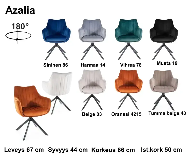 | Leveys | Syvyys | Korkeus | Halkaisija | kannen paksuus | Ruokapöydän koko avattuna 1 jatkolla | Ruokapöydän koko avattuna 2 jatkolla | Nojatuolin mitat | 2 ist sohvan mitat | 3 ist sohvan mitat | Istuinkorkeus | Työtuolin istuinkorkeus | Istuinleveys | Istuinsyvyys | Jalkojen malli | Jalkojen korkeus | Sokkelin korkeus | Selkänojan Leveys | Selkänojan korkeus | Niskatuen korkeus | Käsinojan korkeus lattaiasta | Käsinojan korkeus lattiasta | Käsinojan leveys | Käsinoja mallit | Istuintyyny | Selkätyyny | Muut pehmusteet | Divaanisohvan Jalkapäädyn korkeus | Divaanisohvan pääpäädyn korkeus | Jalkapäädyn korkeus | Pääpäädyn korkeus | Vuodesohvan syvyys avattuna | Vuodekoko | Istuinkorkeus patjan kanssa | Reunan korkeus | Sivulaidan korkeus | Patjapesän korkeus | Patjakoko | Päätyjen koot | Patjan korkeus | Patjan kovuus | Patjan koko jatkettuva | Vapaa tila sängyn alla | Sänkyjen materiaali | Patjojen materiaali | Sijauspatjan materiaali | Kangasverhoilu | Kaapin sisämitat | Laatikon sisämitat | Materiaali | Materiaalit | Mitta | Muut mitat | Muuta | lisätietoja | Väri | Jalkojen väri | Nahkavärit | Puuvärit | Vetimien väri | Vapaa tila tuotteen alla | Tekniset tiedot | Painoraja | Takuu | Saatavuus | Toimitus | Paino | Timantti värit | Jalat tai sokkeli | Kannen koko | Elementit | Ovien malli | Timantti osien materiaali | Hyllyjen materiaali | Vetimet | Valmistusmaa | Taljan mitat | Mattojen Materiaali | Tyynyjen ja torkkujen materiaali | mattojen mitat | Nukan pituus | Mattojen värit | Tyynyjen ja torkkujen värit | Rullamaton leveydet | Varjostimen korkeus: | Varjostimen leveys | Varjostimen syvyys | Valaisimen Materiaali | Valaisimen tiedot | Valaisimen värit | Varjostimen värit | Huomioitavaa | Työtuolien ominaisuudet | Työtuolien verhoilu |