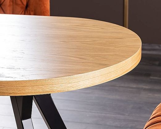 LV tammen sävy ja musta metallijalka luovat modernin, skandinaavisen ilmeen, kun taas MDF ja luonnonviilu takaavat kestävyyden ja pitkäikäisyyden päivittäisessä käytössä.