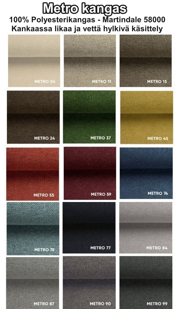 Vuodesohva on verhoiltu laadukkaalla ja kestävällä Sundsvall tai metro kankaalla. Saatavana myös muilla kankailla ota tällöin yhteyttä asiakaspalveluumme.