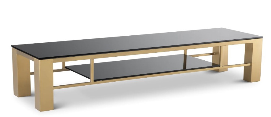 Harjatun messingin ja mustan lasin elegantti yhdistelmä luo hienostuneen kokonaisuuden, joka sopii saumattomasti erilaisiin sisustuksiin. Drexel TV-taso toimii sekä näyttävänä keskipisteenä että harmonisena osana olohuoneen kalustusta.