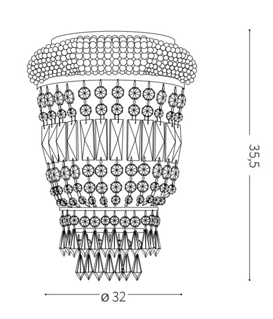 Metallirungon ja runsaan kristallikoristelun yhdistelmä takaa kestävän ja viimeistellyn rakenteen. E14-kannat mahdollistavat valaistuksen räätälöinnin valitsemalla juuri halutut polttimot valon määrän ja tunnelman mukaan, tehden valaisimesta monipuolisen ja ajattoman.