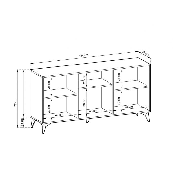 Leveydeltään 153,5 cm, syvyydeltään 39 cm ja korkeudeltaan 76,5 cm oleva senkki sopii moniin eri tiloihin tuoden niihin sekä tyylikästä luonnetta että käytännöllisyyttä. Toimitus osina helpottaa sen asentamista juuri oikealle paikalle kotona.