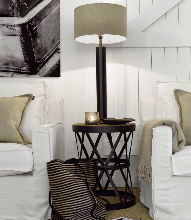 Yhdistelmä jalavapuisesta kannesta ja mustasta rautarungosta luo hienostuneen ja ajattoman ilmeen, joka täydentää tilan ilmettä ilman, että se vie liikaa huomiota. East-sivupöytä toimii täydellisesti niin olohuoneessa, eteisessä kuin makuuhuoneen sivupöytänä.