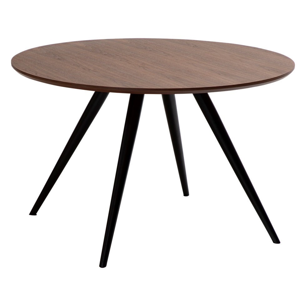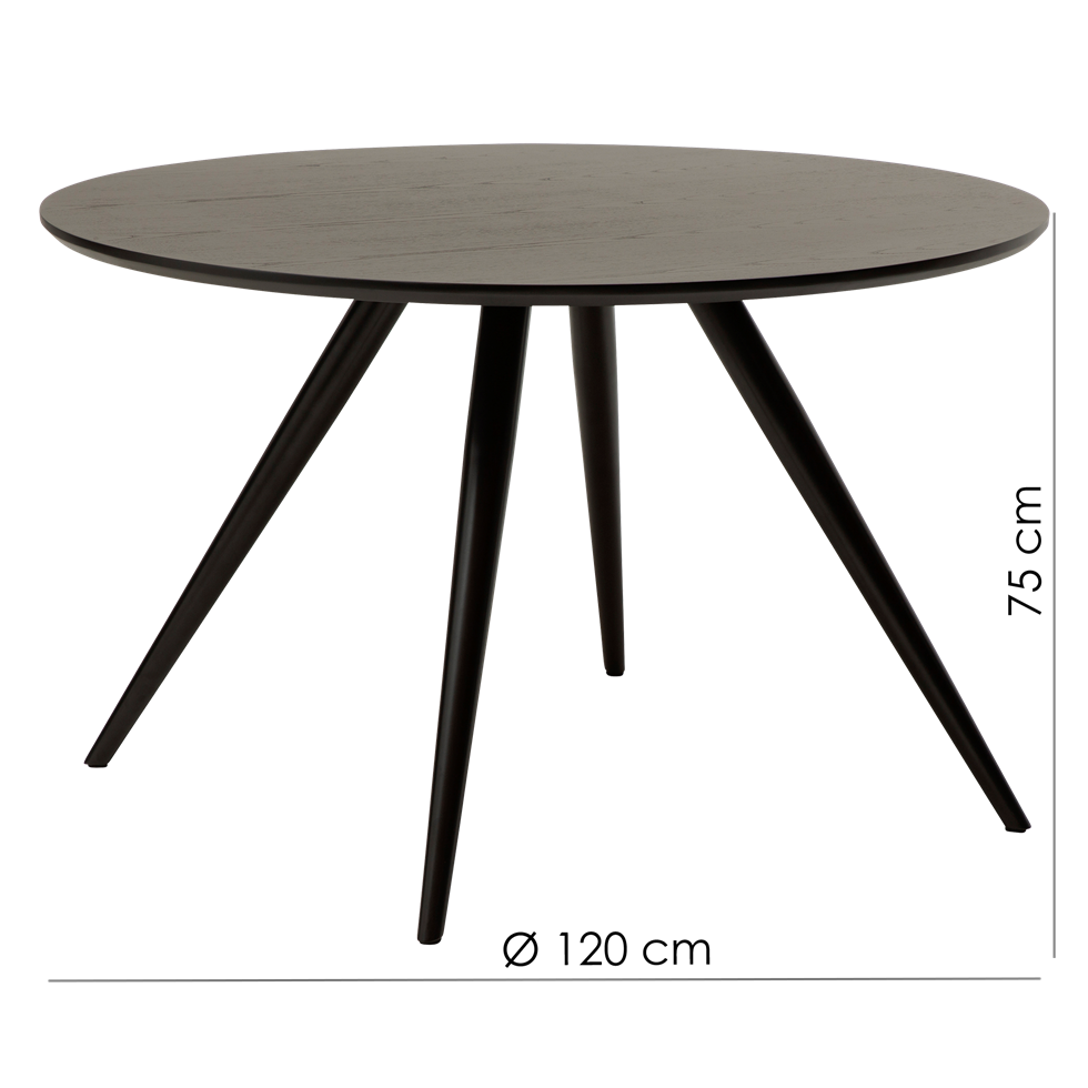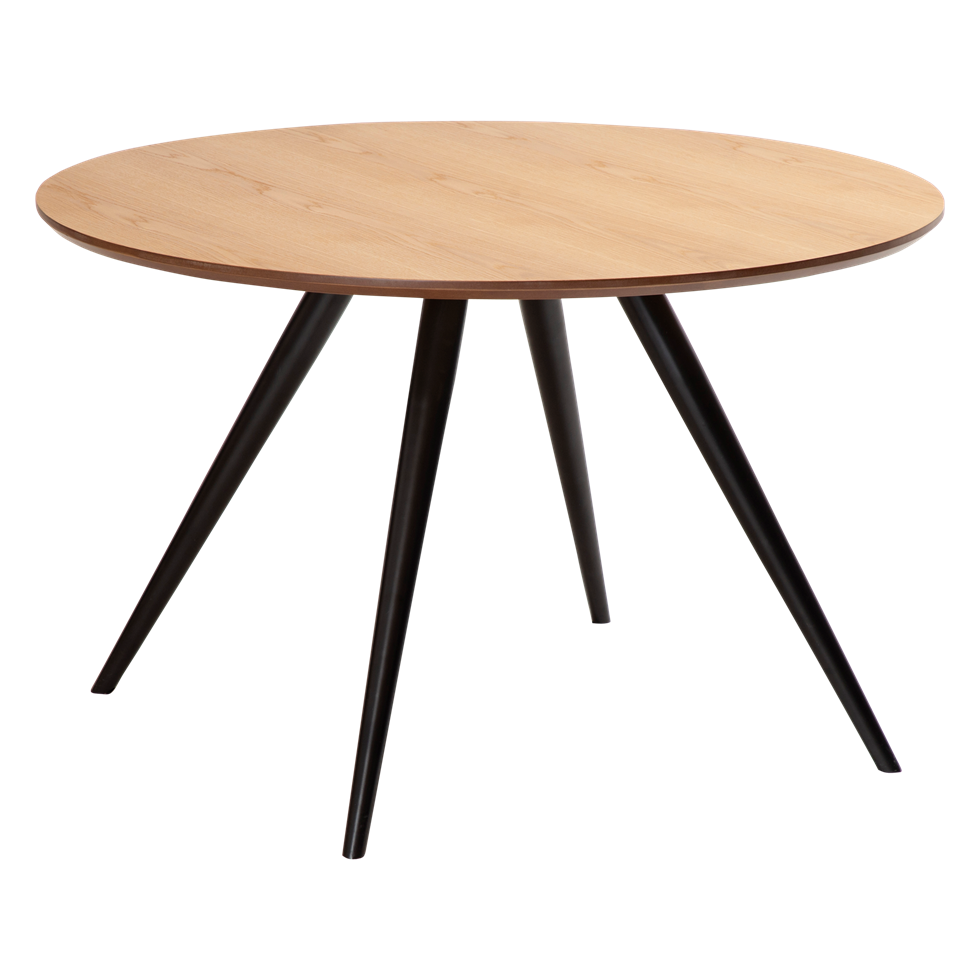 Eclipse-pyöreä ruokapöytä tuo tilaan keveän, tyylikkään ja ajattoman ilmeen, jossa kartiomaiset mustat jalat ja laadukas viilukansi muodostavat näyttävän kokonaisuuden. Pyöreä muoto edistää luonnollista yhdessäoloa, tehden siitä täydellisen valinnan ruokailutilaan tai moderniin toimistoympäristöön.