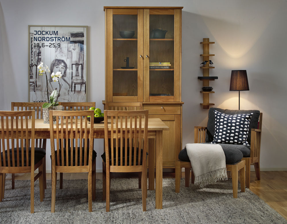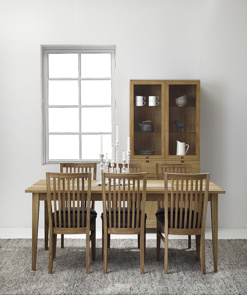 Ekliden-sarjan vitriini on korkealaatuinen ja moderni säilytyskaluste, jossa yhdistyvät klassiset yksityiskohdat ja selkeä, suoraviivainen muotoilu. Öljytty tammi tuo tilaan luonnollista lämpöä ja arvokkuutta, ja hoikka muotoilu sopii erinomaisesti niin ruokailutilaan kuin olohuoneeseen.