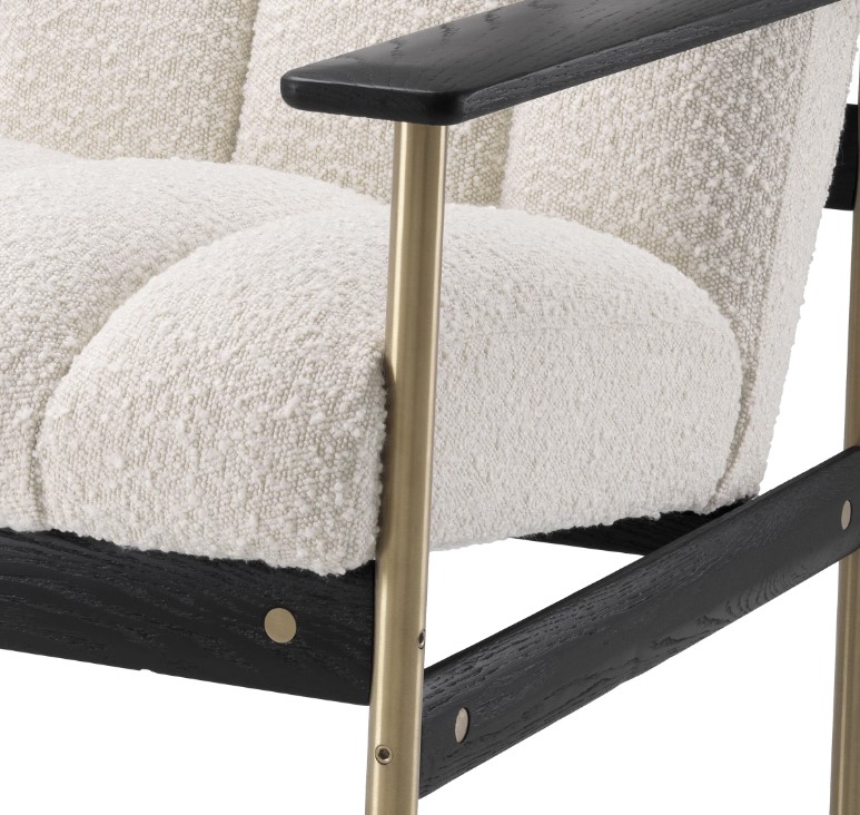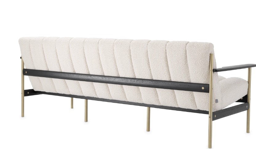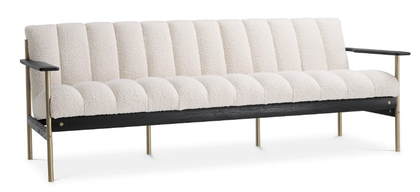 Elan-sohva yhdistää äärimmäisen mukavuuden ja modernin tyylikkyyden, tuoden tilaasi elegantin ja ajattoman ilmeen. Luonnonvalkoinen bouclé-kangas, mustat puuosat ja harjatun messingin yksityiskohdat luovat rohkean ja persoonallisen kokonaisuuden, joka korostaa sisustuksesi hienostuneisuutta.
