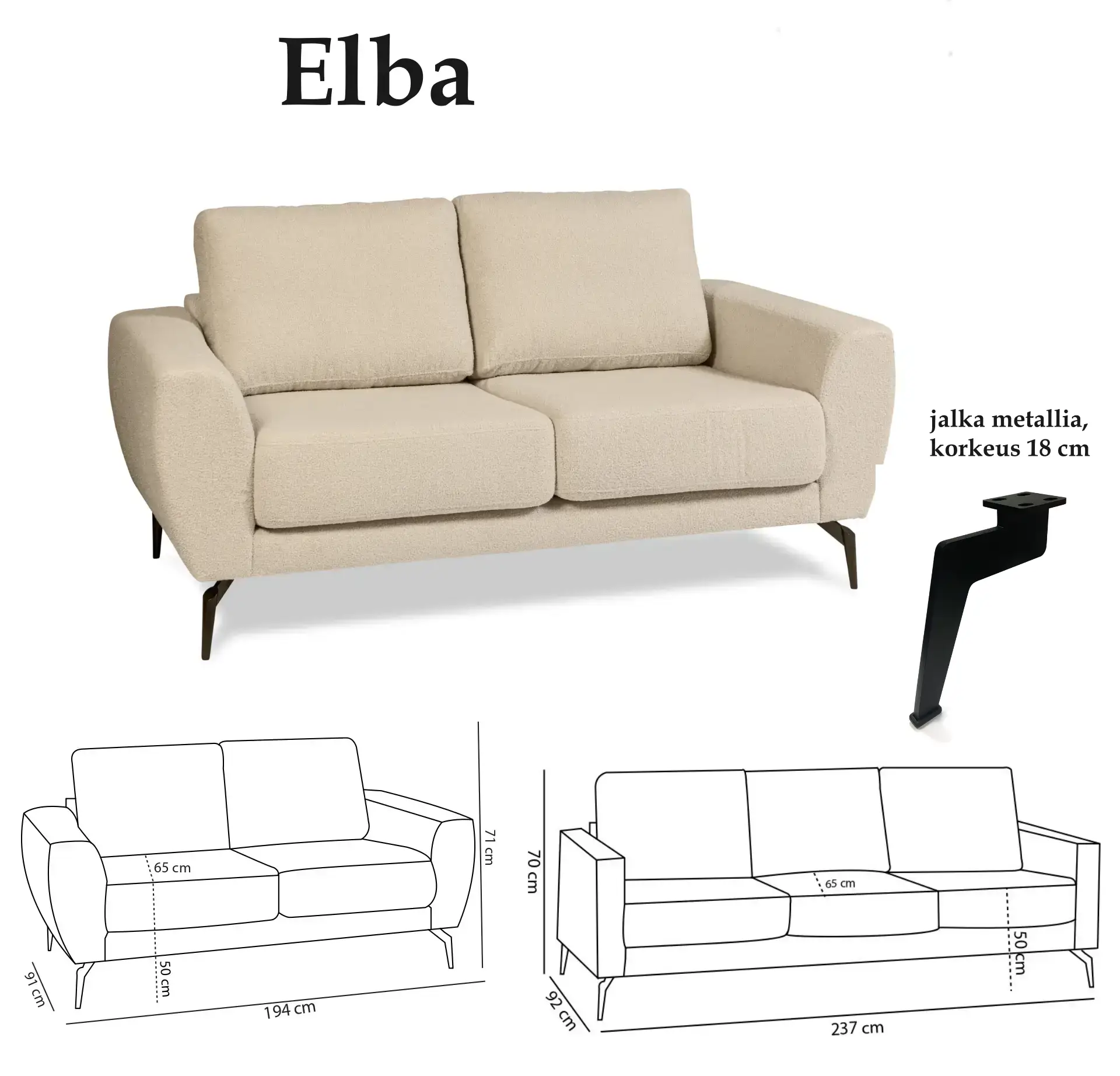 Elba sarjan rahi on moderni ja monipuolinen valinta, joka tarjoaa sekä mukavuutta että käytännöllisyyttä. Runko on laadukasta massiivipuuta, kalustelevyä sekä vaneria. Laadukkaan pussijousituksen ansiosta Elba tarjoaa erinomaisen sekä kestävän istuintuntuman.