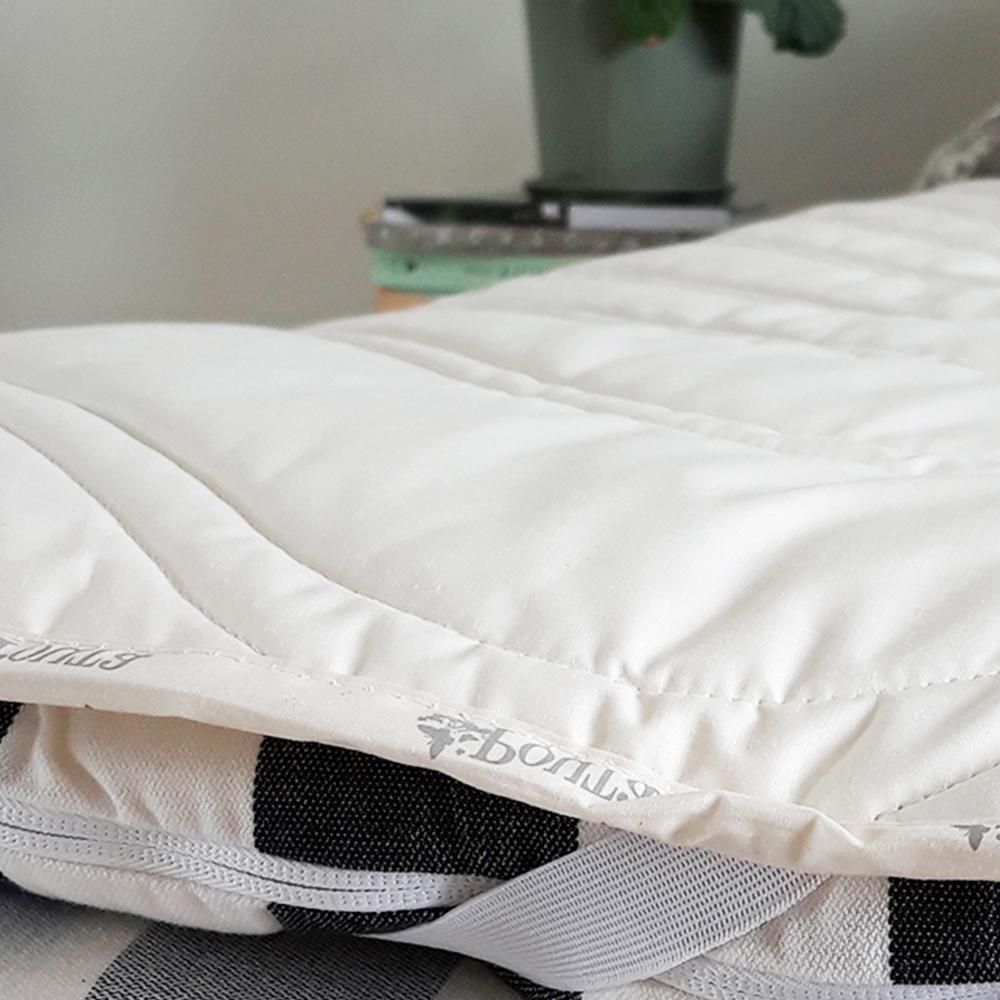 Pouta-petauspatjansuoja asetetaan sijauspatjan päälle, jolloin se suojaa tehokkaasti likaantumiselta ja tekee vuoteen puhtaanapidosta helpompaa. Joustavat kulmanauhat pitävät suojan tiiviisti paikoillaan, ja se on helppo irrottaa ja pestä – vesipesu onnistuu jopa 60 °C:ssa. Täyte on valmistettu kierrätetyistä PET-pulloista, mikä tekee tuotteesta ympäristöystävällisen valinnan. Suoja on saatavana useissa eri kokovaihtoehdoissa, joten se sopii lähes kaikkiin sijauspatjoihin.