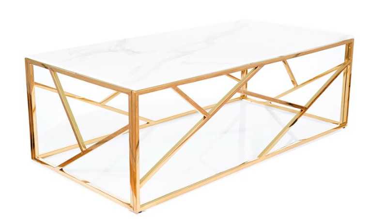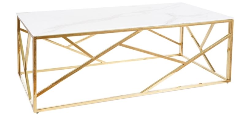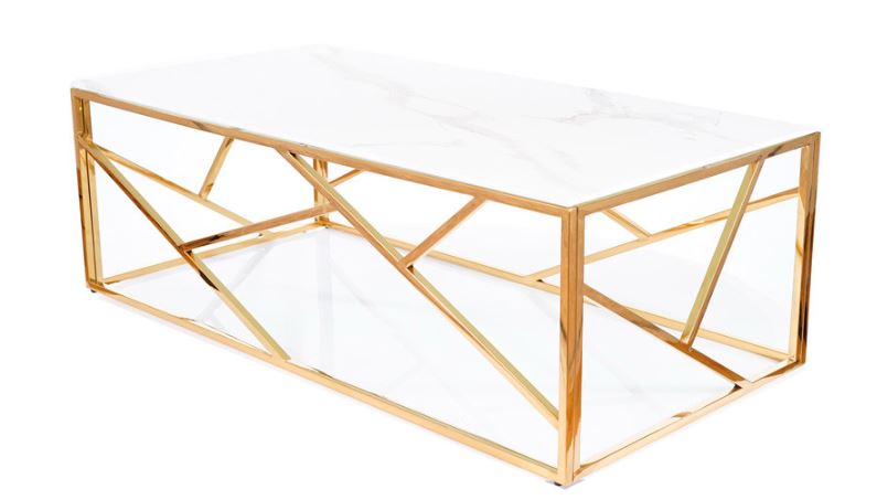 Escada Sohvapöytä A II yhdistelee kultaiset metallijalat ja valkoisen marmorikuvioidun karkaistun lasikannen, tuoden olohuoneeseen näyttävää eleganssia ja ajattoman modernin tyylin.