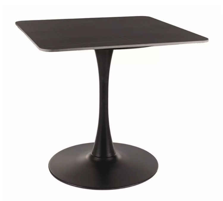 Musta marmorikuvioitu kansi tuo sisustukseen elegantin ja modernin tunnelman, jota korostaa vankka ja katseenvangitseva trumpettijalka.