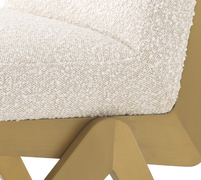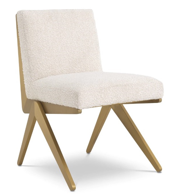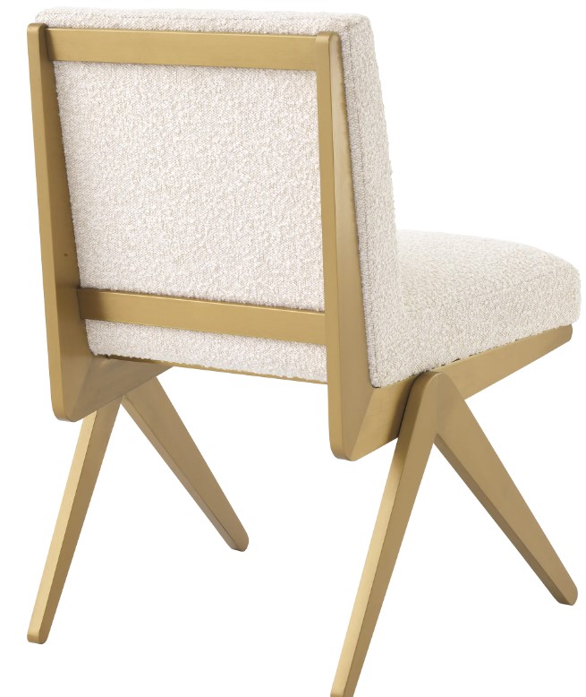 Fico-ruokailutuoli yhdistää harjatun messinkirungon ja valkoisen boucle-verhoilun, tuoden ruokailutilaasi hienostunutta modernia tyyliä. Sen selkeä ja ajaton design tekee siitä täydellisen valinnan näyttäviin ja minimalistisiin sisustuksiin.