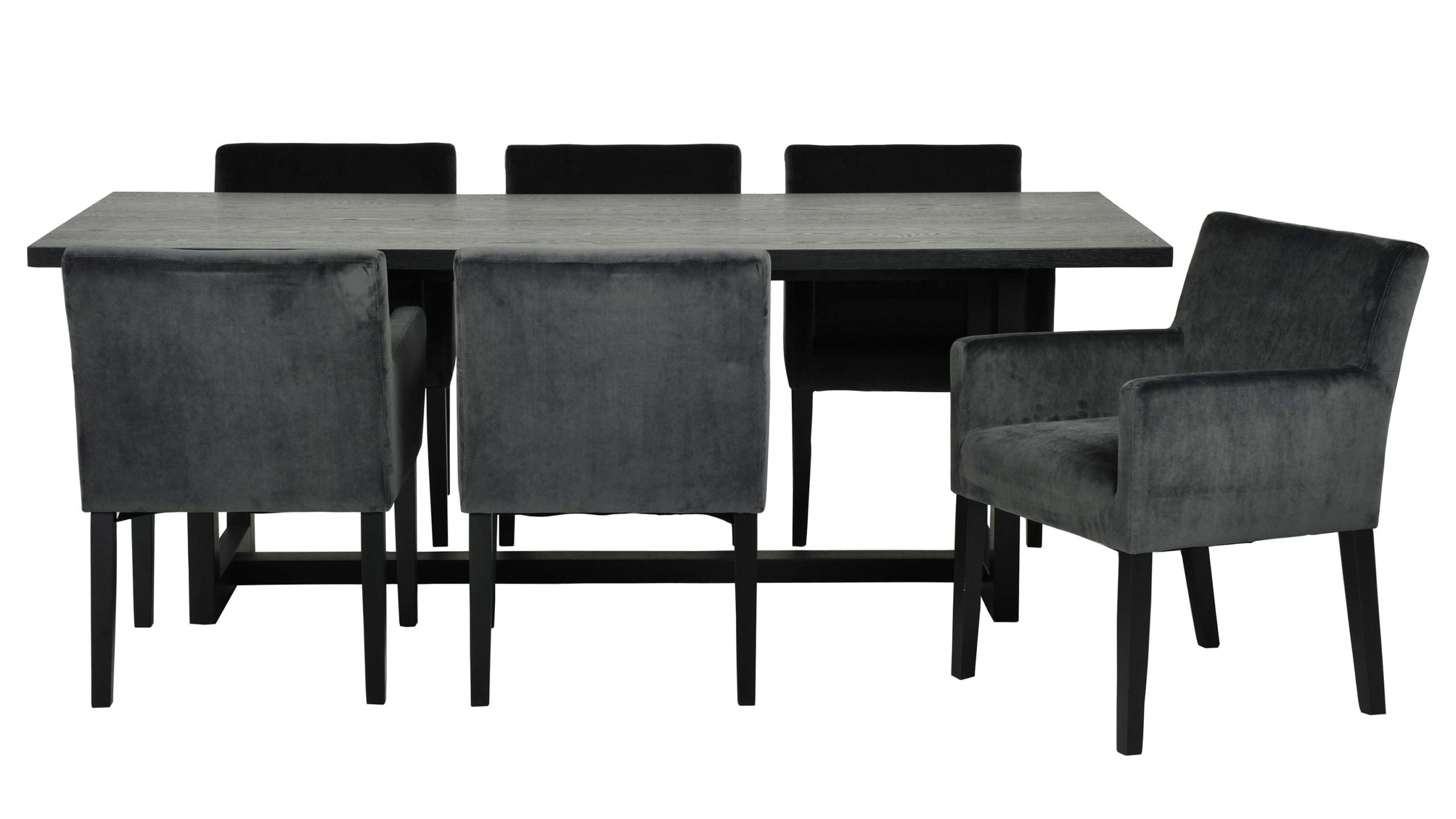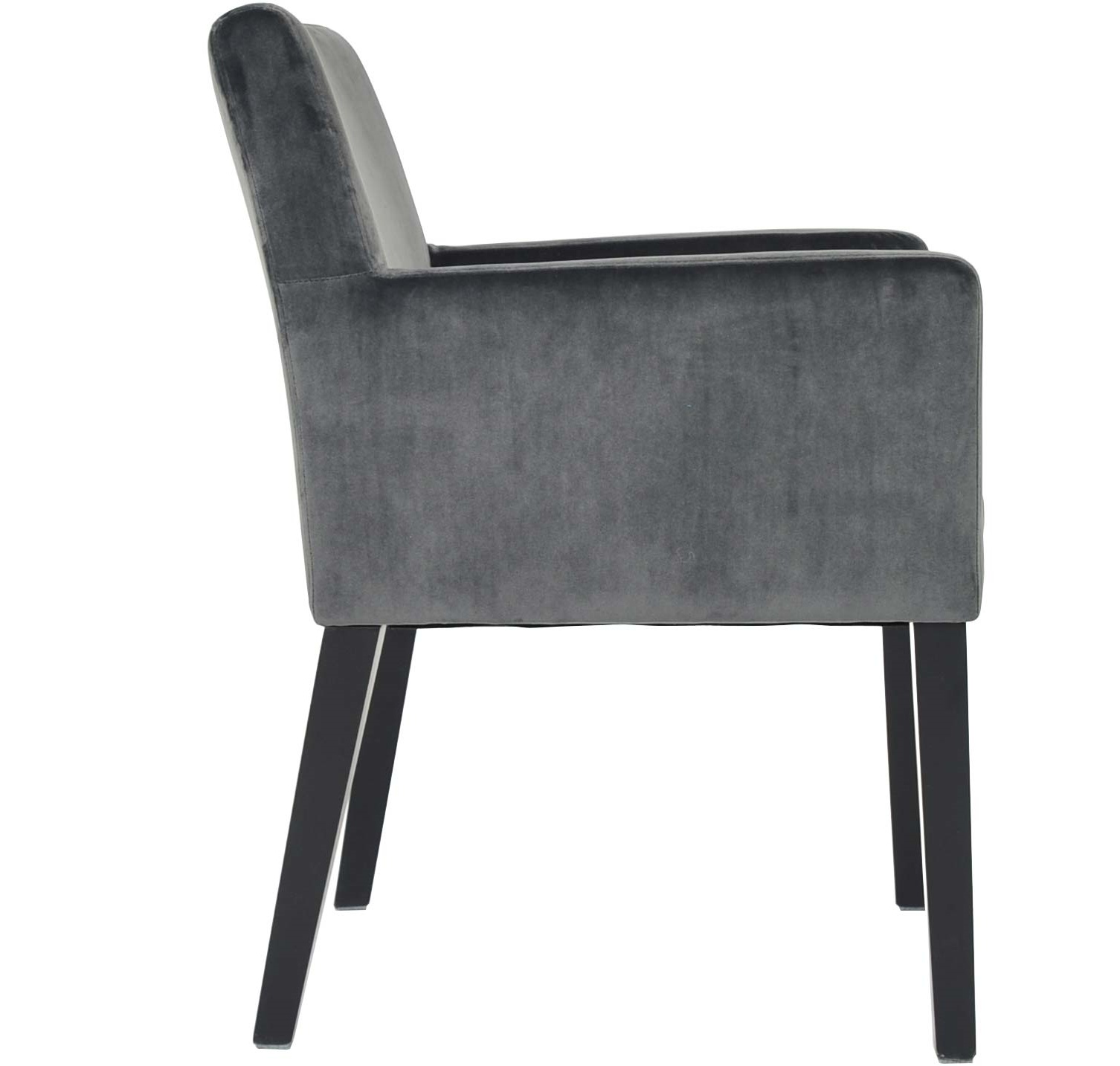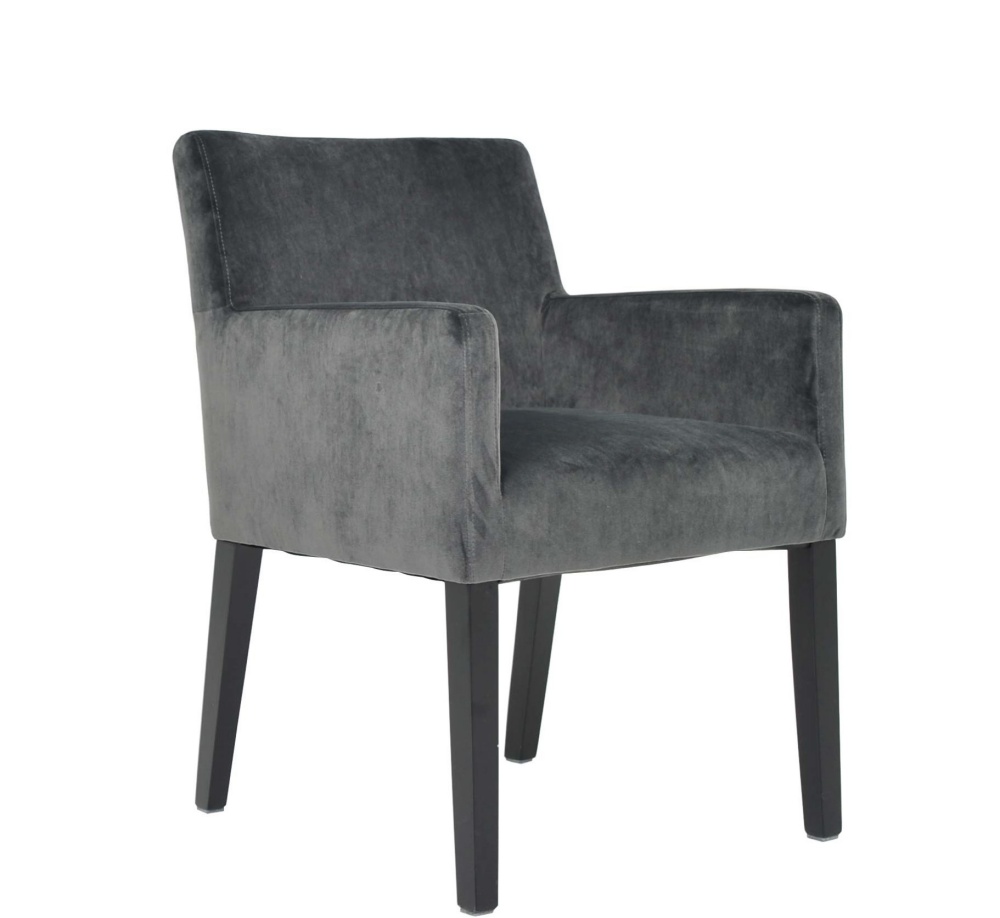 Filip tuoli yhdistää modernin muotoilun ja klassisen samettiverhoilun, luoden ylellisen ja ajattoman ilmeen tummanharmaalla kankaallaan ja mustilla jaloillaan. Tuoli on valmistettu laadukkaista materiaaleista: kestävä samettikangas istuinosassa, MDF-rakenne rungossa ja tukevat kumipuiset jalat takaavat pitkäikäisyyden sekä mukavan istumakokemuksen. Ergonomiset mitat takaavat miellyttävän ja tukevan istumisasennon.