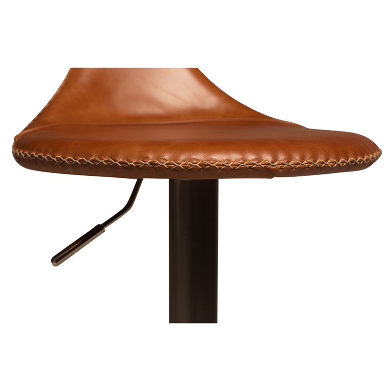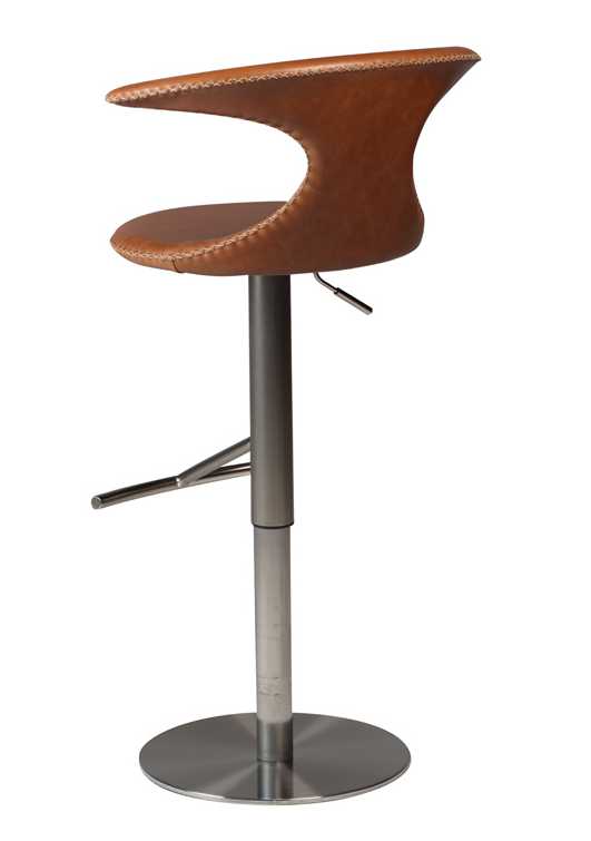Kaasujousella toimiva korkeudensäätö mahdollistaa istuinkorkeuden tarkan muokkaamisen juuri käyttötarpeen mukaan, ja ergonominen selkänoja tuo lisää istuinmukavuutta. Taivutettu vaneri-istuin on verhoiltu aidolla nahalla, joka kestää käyttöä ja tarjoaa ylellisen tuntuman. Harjatusta teräksestä valmistettu pyöreä jalka tuo kokonaisuuteen modernia ryhtiä ja kestävyyttä.