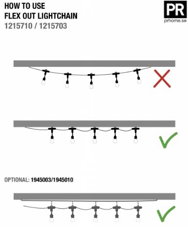 IP44-luokiteltu Flex Out Hue -valosarja kestää ulko-olosuhteet ja soveltuu erinomaisesti ympärivuotiseen käyttöön. 6,5 metrin pituinen valosarja, 80 cm väli varjostimien välillä sekä 250 cm virtajohto tarjoavat runsaasti joustavuutta sijoitteluun. Viisi E27-kantaista valonlähdettä luovat tasaisen ja miellyttävän valaistuksen koko alueelle.