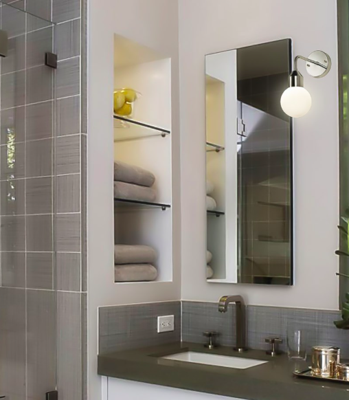 Tyylikäs Florens seinävalaisin on harmoninen yhdistelmä modernia muotokieltä ja klassista eleganssia. Metallirunko ja lasikupu luovat viimeistellyn ilmeen, joka sopii erinomaisesti kylpyhuoneeseen, WC-tilaan tai muihin kodin tiloihin, joissa halutaan sekä toimivuutta että tyylikkyyttä. Saatavilla kromin, messingin ja mustan sävyissä.