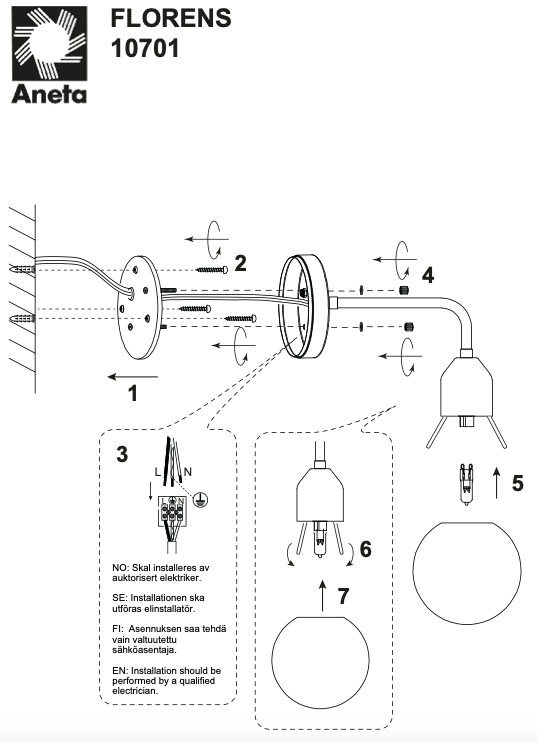 Metallin ja lasin yhdistelmä varmistaa kestävän ja pitkäikäisen rakenteen. Selkeät mutta näyttävät mitat (12 × 24,5 × 32 cm) tekevät Florens seinävalaisimesta tasapainoisen kokonaisuuden, joka toimii sekä yksittäin että pareittain asennettuna.