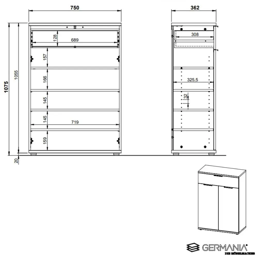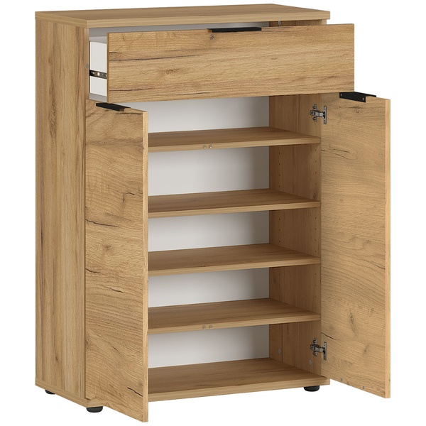 Fremont kenkäkaappi 2790 tarjoaa kahden oven taakse sijoitetut neljä korkeussäädettävää hyllyä, jotka antavat runsaasti tilaa kengille ja asusteille. Selkeä ja toimiva rakenne auttaa pitämään eteisen siistinä ja helposti hallittavana.
