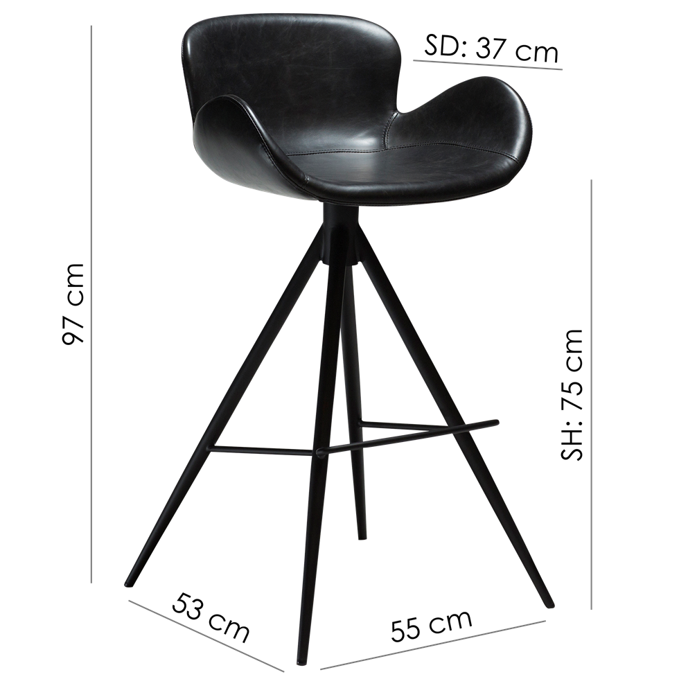 Gaia-baarituoli erottuu kurvikkaalla ja dramaattisella siluetillaan, joka tekee siitä näyttävän katseenvangitsijan missä tahansa tilassa. Hyvin muotoiltu istuin tarjoaa erinomaisen istuinmukavuuden, ja vintage-keinonahkaverhoilu tuo kokonaisuuteen lämpöä ja ylellisyyttä.