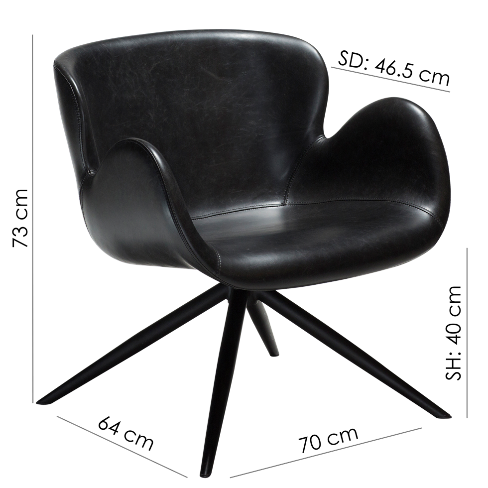 Pulverimaalatut mustat metallijalat takaavat tukevuuden ja pitkäikäisen rakenteen, kun taas pehmeästi verhoiltu istuin tuo mukavuutta päivittäiseen käyttöön. Gaia nojatuoli toimitetaan osissa ja on helppo koota – vain jalat kiinnitetään paikoilleen.