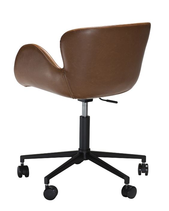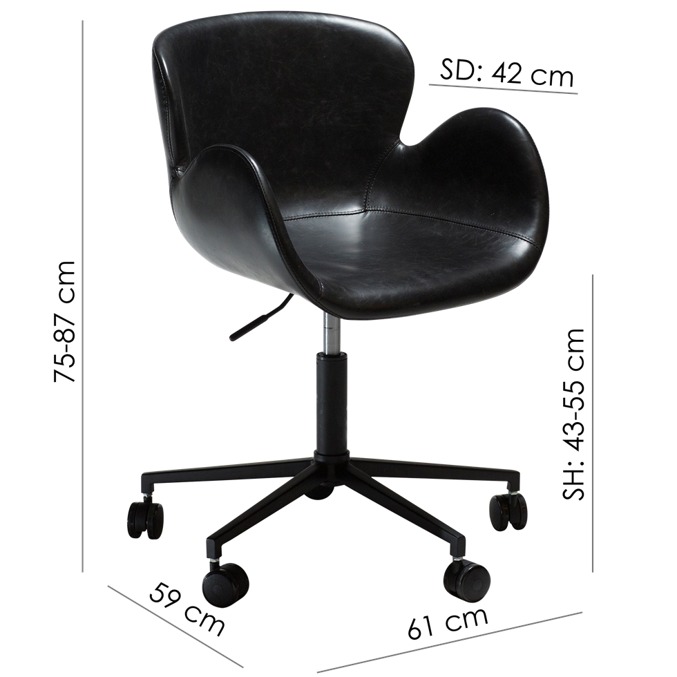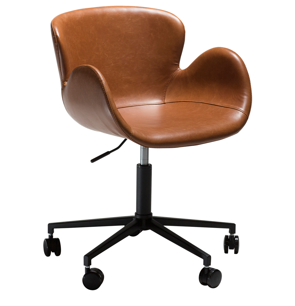 Gaia toimistotuoli hurmaa kurvikkaalla ja dramaattisella siluetillaan, joka tuo työtilaan modernia näyttävyyttä. Ergonomisesti muotoiltu istuin, verhoiltuna vintage-keinonahalla, tarjoaa miellyttävän tuen ja mukavuuden pitkillekin työpäiville.