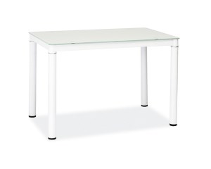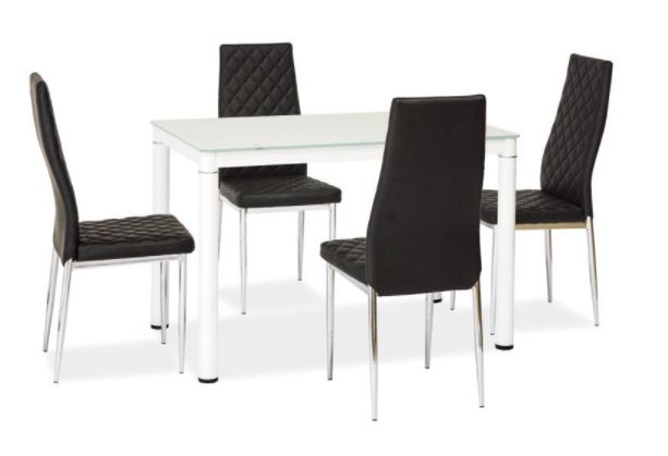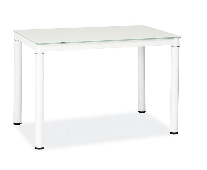 Galant ruokapöytä yhdistää modernin valkoisen lasikannen ja tukevat metallijalat, luoden elegantin ja kevyen ilmeen pienempiinkin tiloihin. Kompakti koko (100 × 60 × 75 cm) tekee siitä käytännöllisen ratkaisun ilman kompromisseja tyylissä.