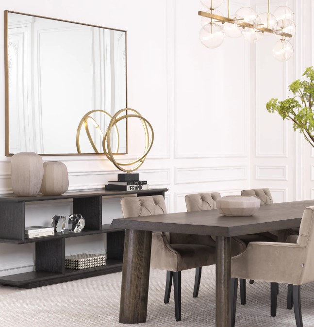 Mindipuu, merantiviilu, tammiviilu, MDF ja vaneri takaavat rakenteen kestävyyden ja arvokkaan viimeistelyn. Imposantit mitat – leveys 230 cm, syvyys 40 cm ja korkeus 85,5 cm – tekevät hyllystä vaikuttavan ja ryhdikkään kokonaisuuden suurempiinkin tiloihin.