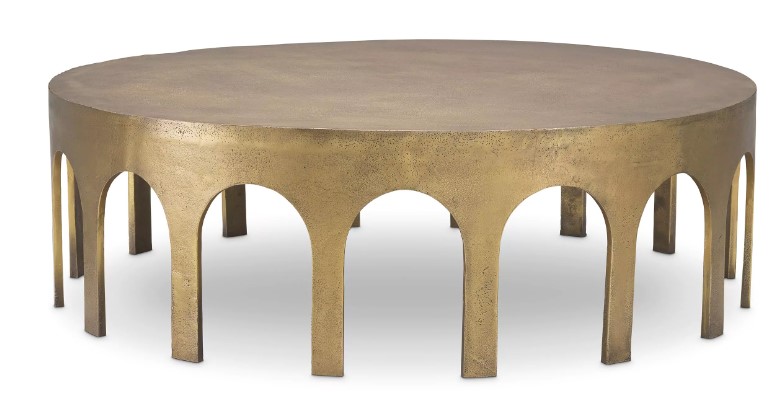 Antiikin messingin sävyinen Gardini-sohvapöytä tuo olohuoneeseesi ylellistä lämpöä ja klassista eleganssia. Sen pyöreä muotoilu ja näyttävä metallipinta tekevät pöydästä sisustuksen keskipisteen, joka täydentää niin modernia kuin perinteistäkin tyyliä.