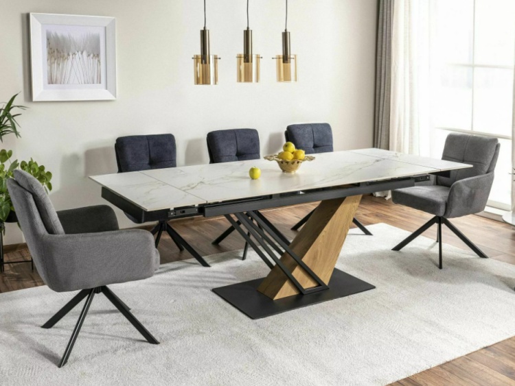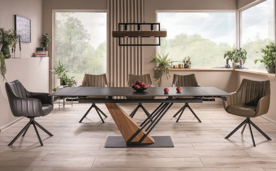 Genesis-ruokapöytä tarjoaa jopa 60 cm lisätilaa molemmissa päissä, jolloin se mukautuu täydellisesti niin arjen aterioihin kuin suurempiin juhlahetkiin. Jatkomekanismi tekee pöydän laajentamisesta vaivatonta ja käytännöllistä.