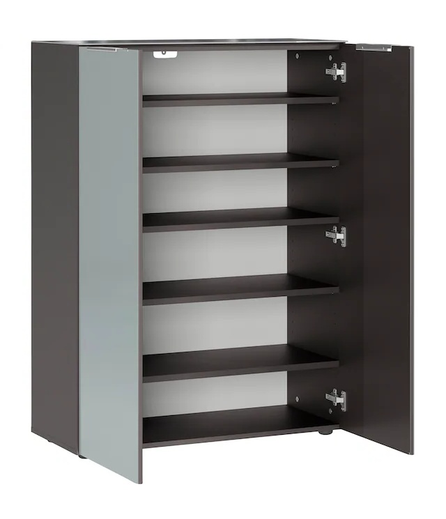 Kaapissa on kaksi ovea ja viisi korkeussäädettävää hyllyä, jotka tarjoavat runsaasti tilaa jopa 20 kenkäparille. Muunneltavuus takaa, että saat sisätilat juuri omiin tarpeisiisi sopiviksi – olipa kyseessä arjen kengät, korot tai saappaat.
