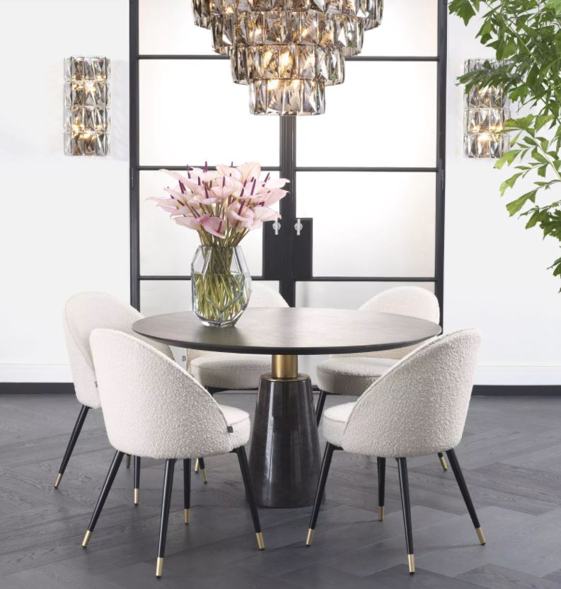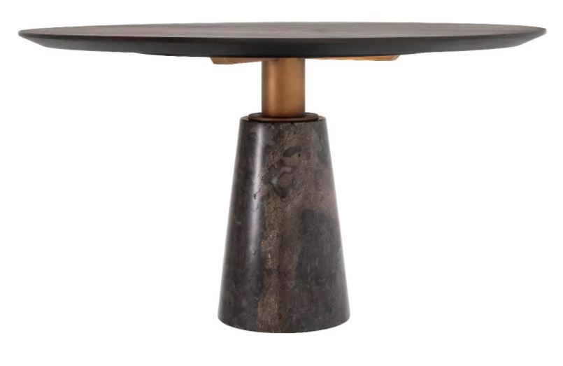 Genova pyöreä ruokapöytä yhdistää modernin muotoilun ja ajattoman tyylin, luoden täydellisen keskipisteen kodin seurusteluhetkiin. Mokkatammiviilu ja harjatun messingin sävyt tuovat lämpöä ja ylellisyyttä, kun taas harmaa marmorikuvioinen alusta lisää hienostunutta ilmettä mihin tahansa ruokailutilaan.